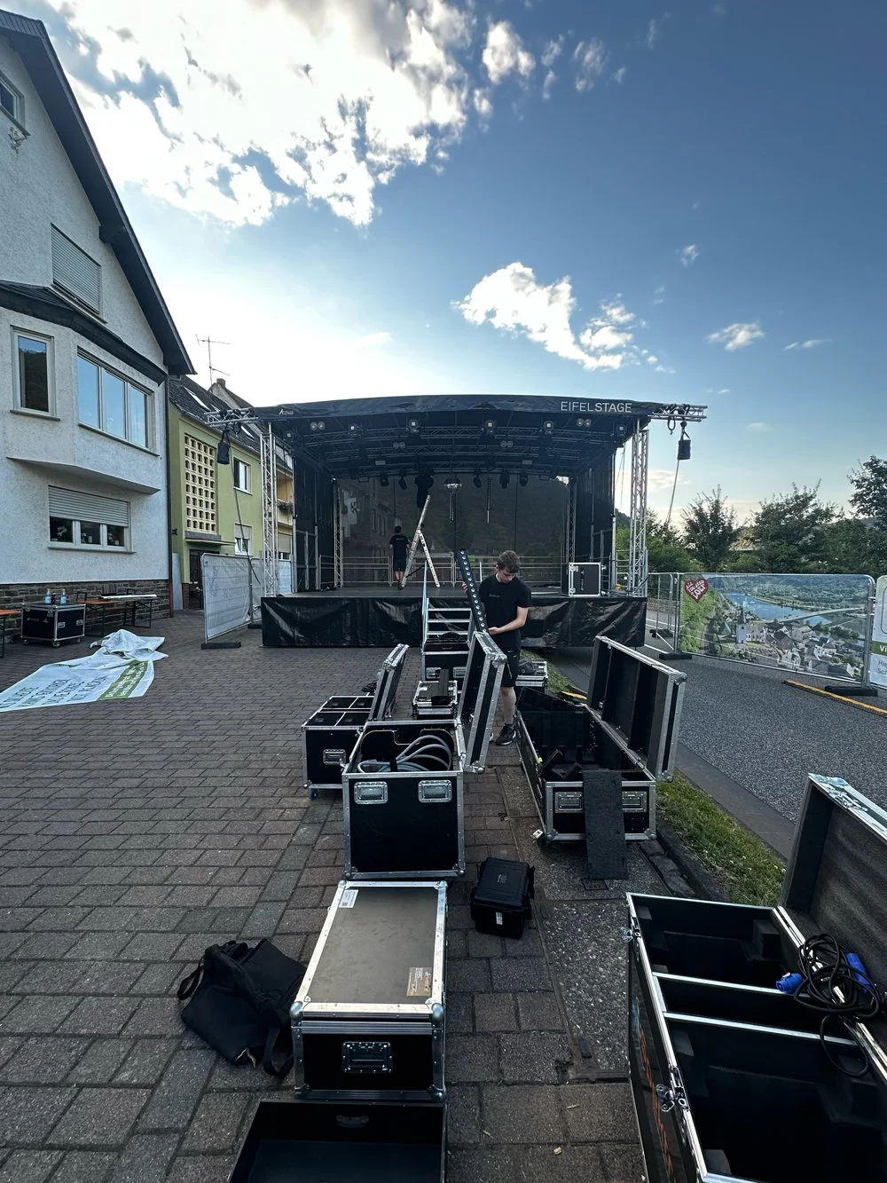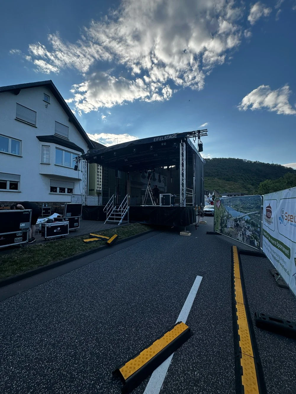 Für das Weinfest Löf lieferten wir unsere AlStage R48 – mit einer Bühnenfläche von 8 x 6 m und einer Höhe von 4,99 m. Dank ihrer kompakten Bauweise findet diese Bühne selbst in den kleinsten Straßen Platz. Besonderes Highlight: Die Bühne wurde auf zwei Straßen verteilt aufgebaut, was einen erhöhten Planungsaufwand und individuelle Vor-Ort-Termine erforderte, um den optimalen Aufbau zu gewährleisten.